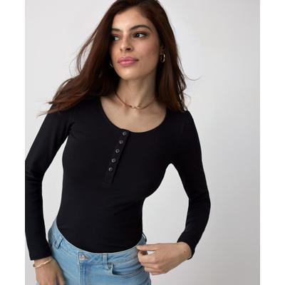 Дамска черна тениска с копчета на деколтето