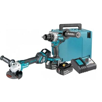Комплект акумулаторен винтоверт и ъглошлайф Makita DLX2431TJ + 3 батерии, зарядно и куфар