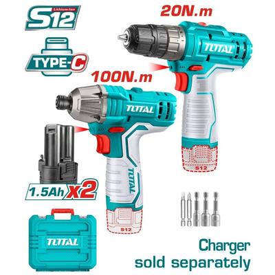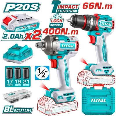 Комплект винтоверт и гайковерт Total Industrial 20V + 2 батерии, зарядно, куфар и аксесоари