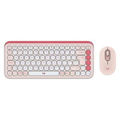 Комплект клавиатура и мишка Logitech - POP ICON COMBO, безжичен, Rose & Off White