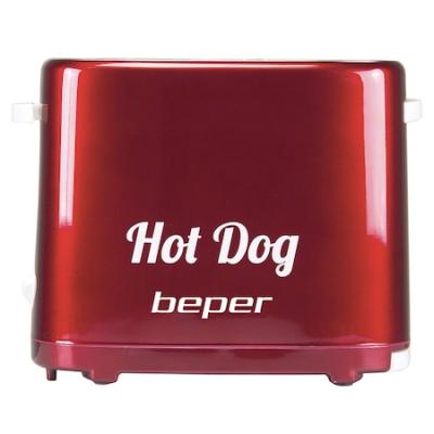Уред за хотдог Beper BT.150Y, 750W, 2 хотдога, 5 степени, Подвижна тавичка за трохи, Червен