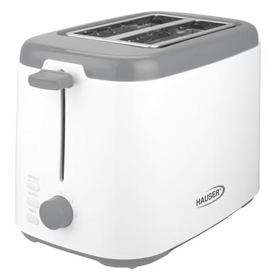 Тостер Hauser T-242, 800W, Две филийки, Непрекъснато препичане, Претопляне и размразяване, Бял/Сив