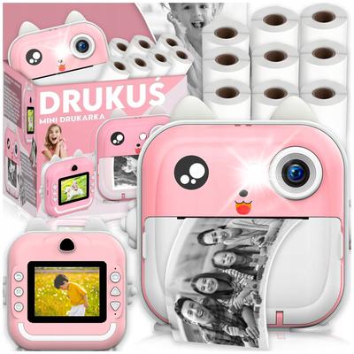 Фотоапарат и мини термичен принтер Drukus 3.0, розов, 48 MP, комплект 13 ролки хартия