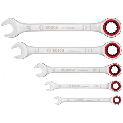 Комплект звездогаечни ключове с тресчотка Bosch 1600A02Z3D, 8 - 19 мм, 5 части