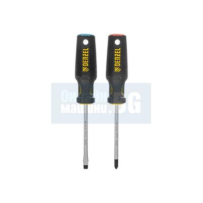 Комплект отвертки Denzel PH+SL, S2, трикомпонентна дръжка, 2 бр