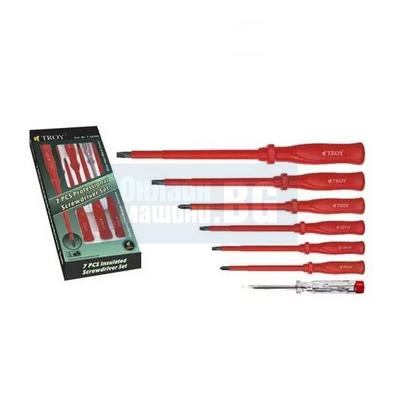 Комплект професионални изолирани отвертки TROY T 22300, 7 броя