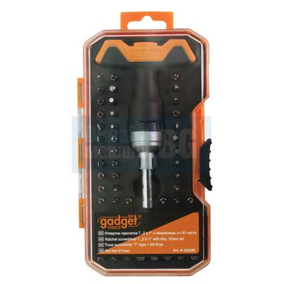 Отвертка–тресчотка T "2 в 1" с накрайници комплект 61 части Gadget