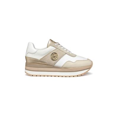 Спортни обувки от кожа и велур с равна платформа, Бял/Светло кафяво Geox