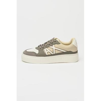 Спортни обувки от еко кожа с велур, Бял/Сиво-кафяв/Бежов ARMANI EXCHANGE
