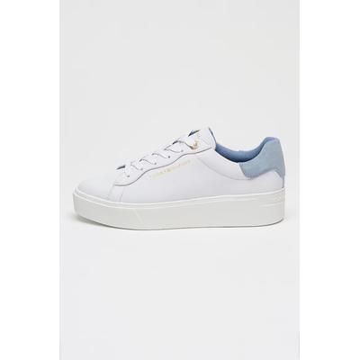 Кожени спортни обувки с равна платформа и лого, Прашно синьо/Бял Tommy Hilfiger