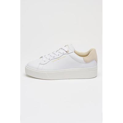Кожени спортни обувки с равна платформа и лого, Бял Tommy Hilfiger