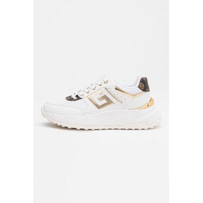 Скосени спортни обувки от еко кожа и мрежа, Златист/Кафяв/Бял GUESS