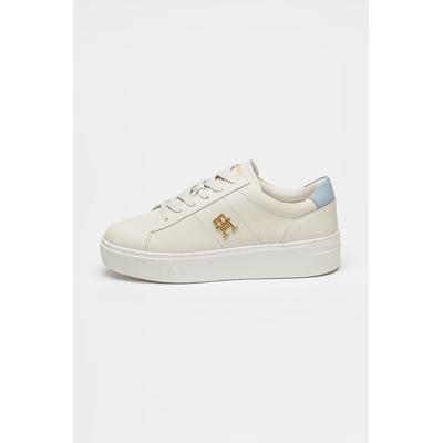 Кожени спортни обувки с лого, Бял/Светлосин Tommy Hilfiger