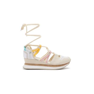 Полускосени сандали от велур с текстил, Бял Gioseppo