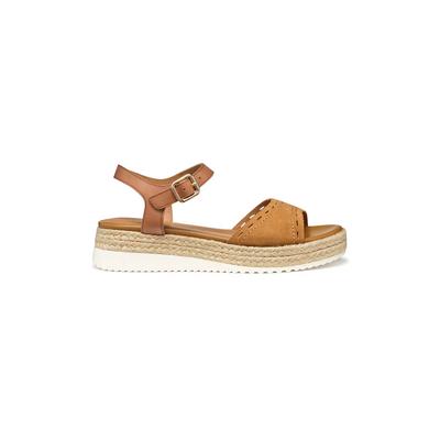 Кожени сандали с равна платформа и велур, Канелено кафяво Geox