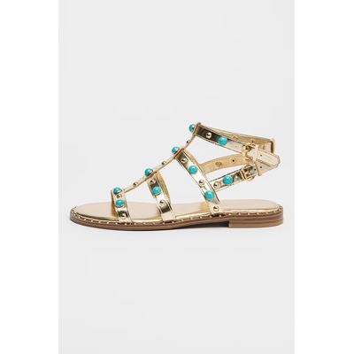 Сандали Mindela от еко кожа с апликации, Златист/Тюркоаз NINE WEST