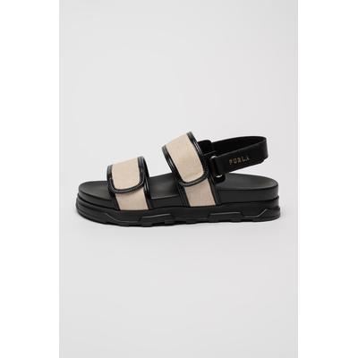 Текстилни сандали с велкро, Черен/Светло бежово Furla