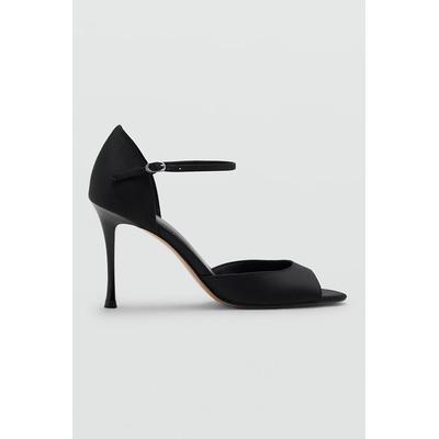 Заострени обувки от еко кожа с котешки ток, Черен Mango