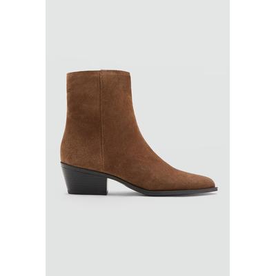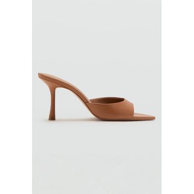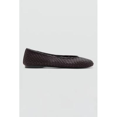 Пантофки с квадратен връх и сплетен дизайн, Тъмнокафяв Mango