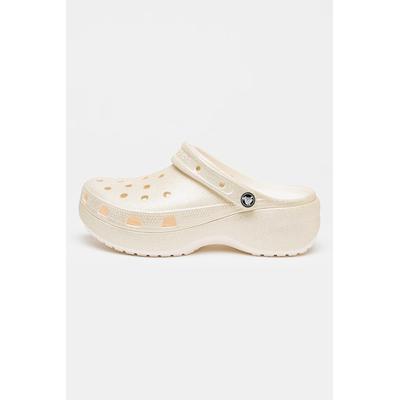 Бляскав крокс Classic с равна платформа и каишка на петата, Слонова кост/Сребрист Crocs