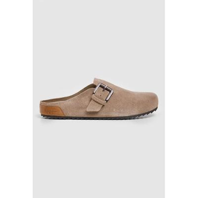 Скосени сандали от еко кожа с юта, Бял/Златист/Канелено кафяво Pepe Jeans London