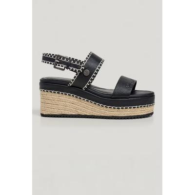 Скосени сандали от еко кожа с юта, Черен/Светло сив Pepe Jeans London