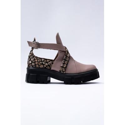 Кожени кежуъл обувки с отвори, Черен/Бежов/Прашно розово VAGAM