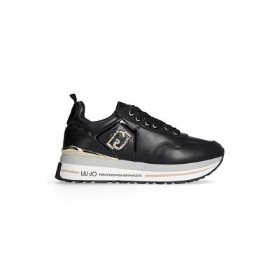 Скосени кожени маратонки с лого, Златист/Черен Liu Jo