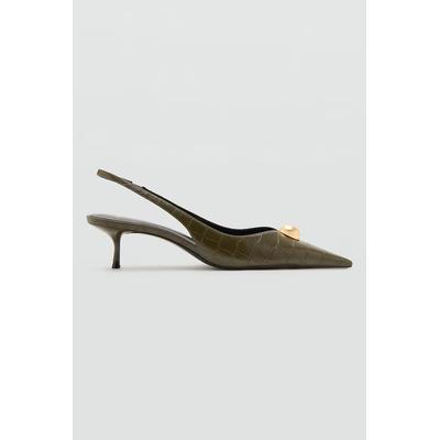 Обувки с отворена пета и шагрен, Златист/Тъмнокафяв Mango