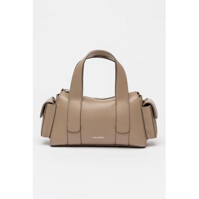 Ръчна чанта Bauletto от еко кожа с допълнителна презрамка, Сиво-кафяв CALVIN KLEIN