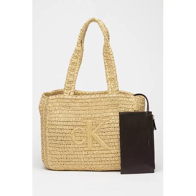 Сплетена чанта от рафия с лого, Бледожълт CALVIN KLEIN