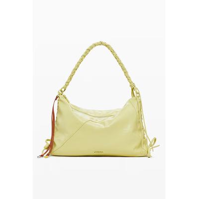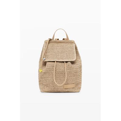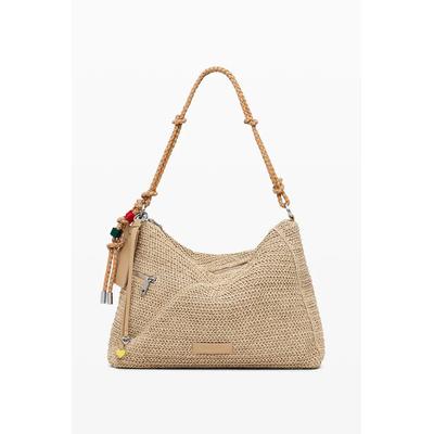 Чанта за рамо от хартиена слама с външен джоб с цип, Бежов DESIGUAL