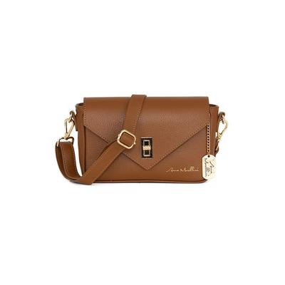 Кожена чанта през рамо с метална система, Канелено кафяво Anna Morellini