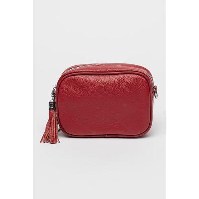 Кожена чанта през рамо с пискюл, Тъмночервен Chiara Canotti