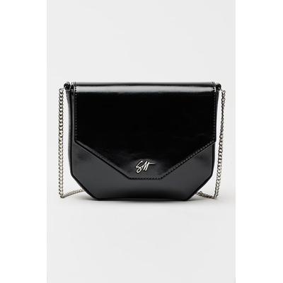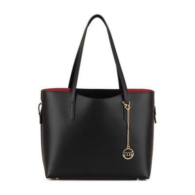 Кожена чанта с отделящ се аксесоар с лого, Черен Mia Tomazzi