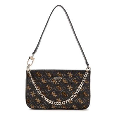 Чанта през рамо Noelle II Mini с десен и дръжка с верижка, Черен/Карамел GUESS