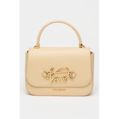 Чанта през рамо от еко кожа с метално лого, Светло бежово Love Moschino
