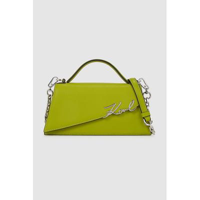 Слим кожена чанта през рамо Signature, Електриково Зелено Karl Lagerfeld