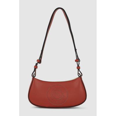 Кожена чанта през рамо с лого с перфорации, Керемидено червено Karl Lagerfeld