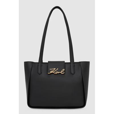 Кожена чанта с лого, Черен Karl Lagerfeld