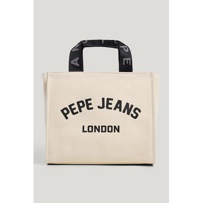 Текстилна чанта за рамо с лого, Черен/Светло бежово Pepe Jeans London