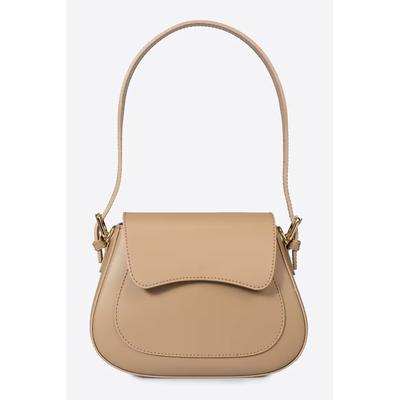 Кожена чанта през рамо с капаче, Бежов Massimo Castelli