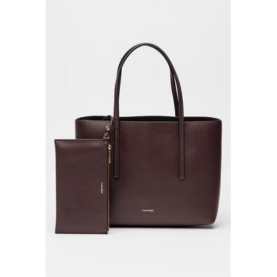 Шопинг чанта от еко кожа с несесер, Тъмновиолетов CALVIN KLEIN
