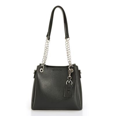 Кожена чанта с дръжки тип верижка, Черен Massimo Castelli