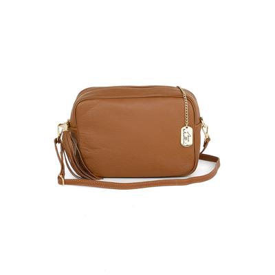 Кожена чанта през рамо с отделяща се презрамка, Канелено кафяво Anna Morellini
