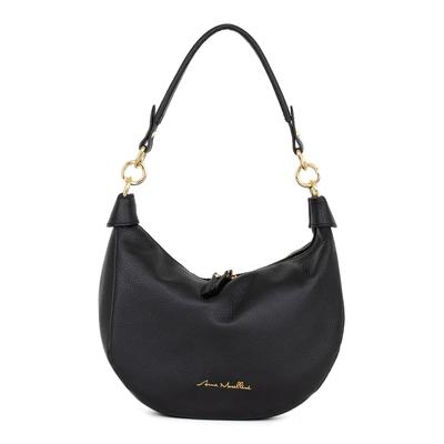 Кожена чанта през рамо с цип, Черен Anna Morellini