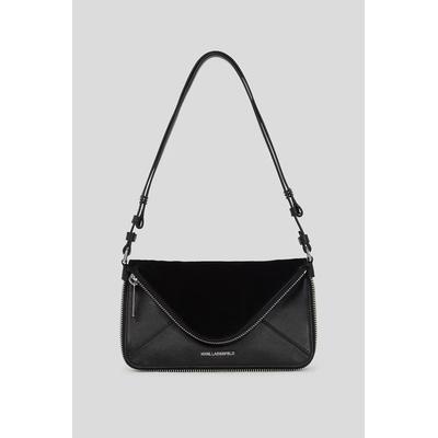 Кожена чанта през рамо с презрамка с лого, Черен Karl Lagerfeld
