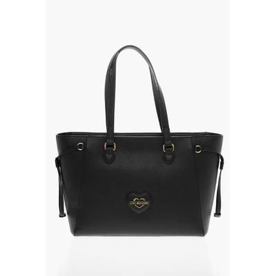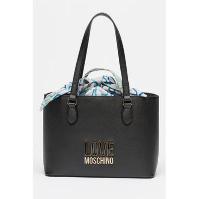 Шопинг чанта от еко кожа с метално лого, Черен Love Moschino