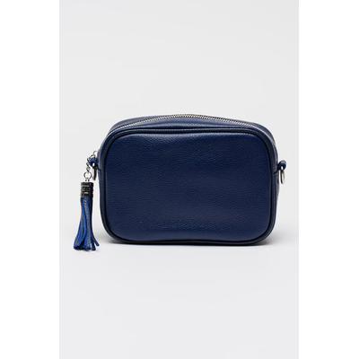 Кожена чанта през рамо с пискюл, Тъмносин Chiara Canotti