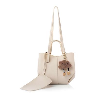 Чанта за рамо от релефна еко кожа с аксесоар с форма на облак, Крем Lucky Bees